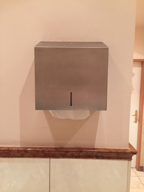 The gents toilets are tucked away downstairs and were offering a very traditional Austrian decor. They were very very clean and had plenty of toilet roll, in fact the most we've seen in a toilet. The actual toilet was weird looking with a extra thick toilet seat with an odd flush system, not sure what that was on it.